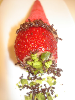 A esa crema le he añadido , fresas , guindas en almibar cortado a trocitos,y pimienta.